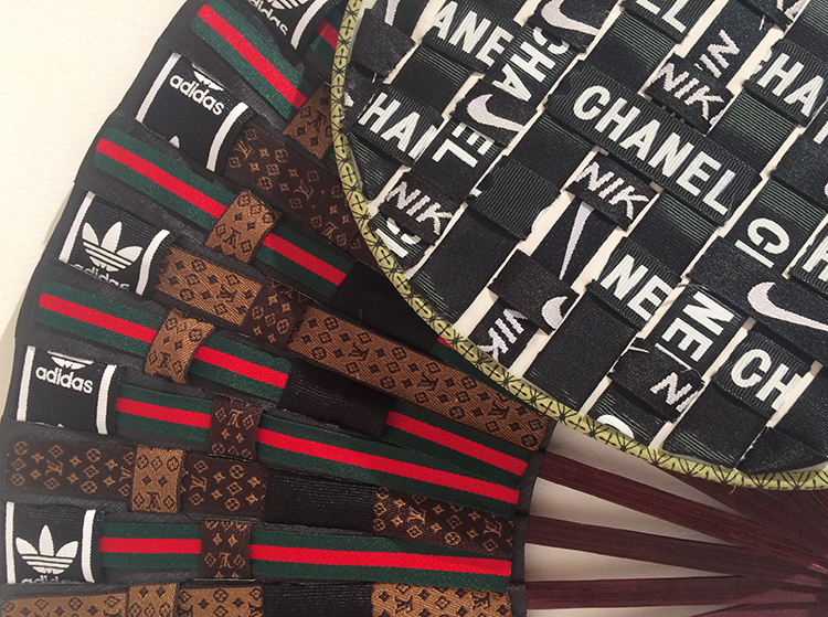 Fans Hand fan, Counterfeit label tag ribbon (Versace, Moschino, Dior, Adidas, Nike, etc.), various sizes, smartphone holder, 2017
