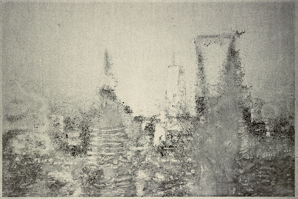 woanders I,II,III Motive aus 3D-Visualisierungen architektonischer Entwürfe werden durch das silberlose fotografische Lichtpausverfahren, Diazotypie, auf Papier belichtet Diazotypie wurde vor allem für die Vervielfältigung von technischen Zeichnungen genutzt.