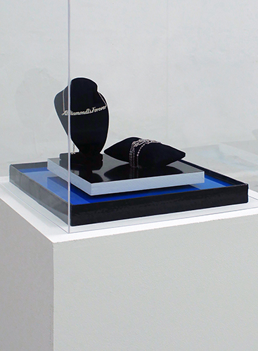 Well phrased targets (A Diamond is forever, Think di rent, Just do it, There is no substitute, For successful living) Necklace, bracelet, silver, various sizes, display, 2017